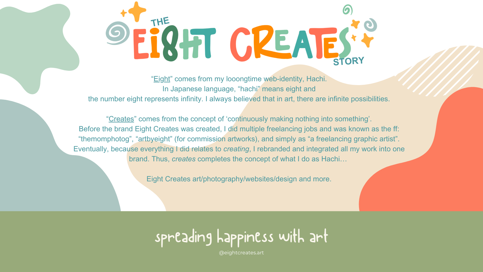 Hachi ("eight" in Japanese), as known online, is a graduate of Multimedia Art and Communication Arts. She pursued different fields of work before landing back to Graphic Arts and Photography.Always inspired to learn new art styles and immerse herself in different fields of graphic artistry and design, Hachi continuously takes on different types of project profiles and follows a timeline and output-based working system.Her main goal is to create art and turn it into something that makes people happy.